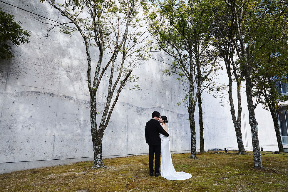 Bride & Groom Dress Styling : PEACOCK BRIDE Photo: studio THE DAY Location : Retreat AONAGI by Onko Chishin Wedding Produce : SETOUCHI WEDDING